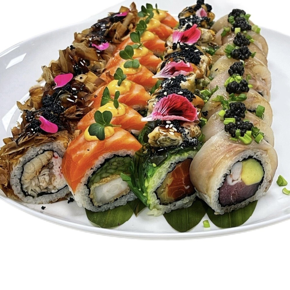 Судзуки урамаки, Ролл со спаржей мами и креветкой темпура, Хияши маки, Ролл с хлопьями тунца и угрем